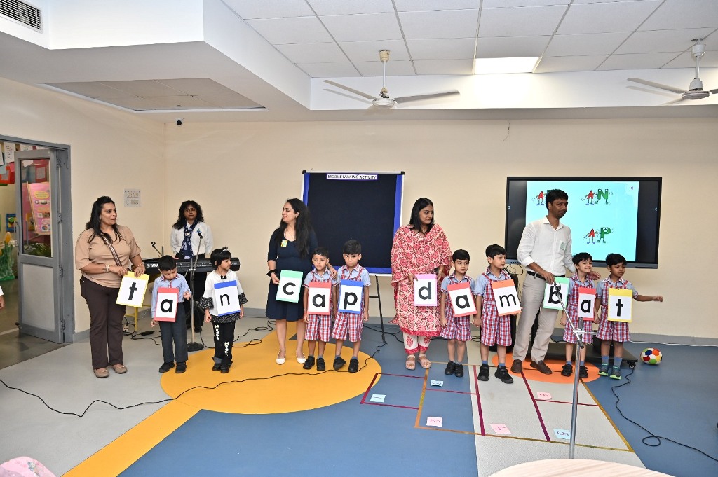 The event featured sessions like 'Fun with Numbers' for LKG parents and 'READ-O-PHONICS' for UKG parents, highlighting the school's commitment to joyful learning.