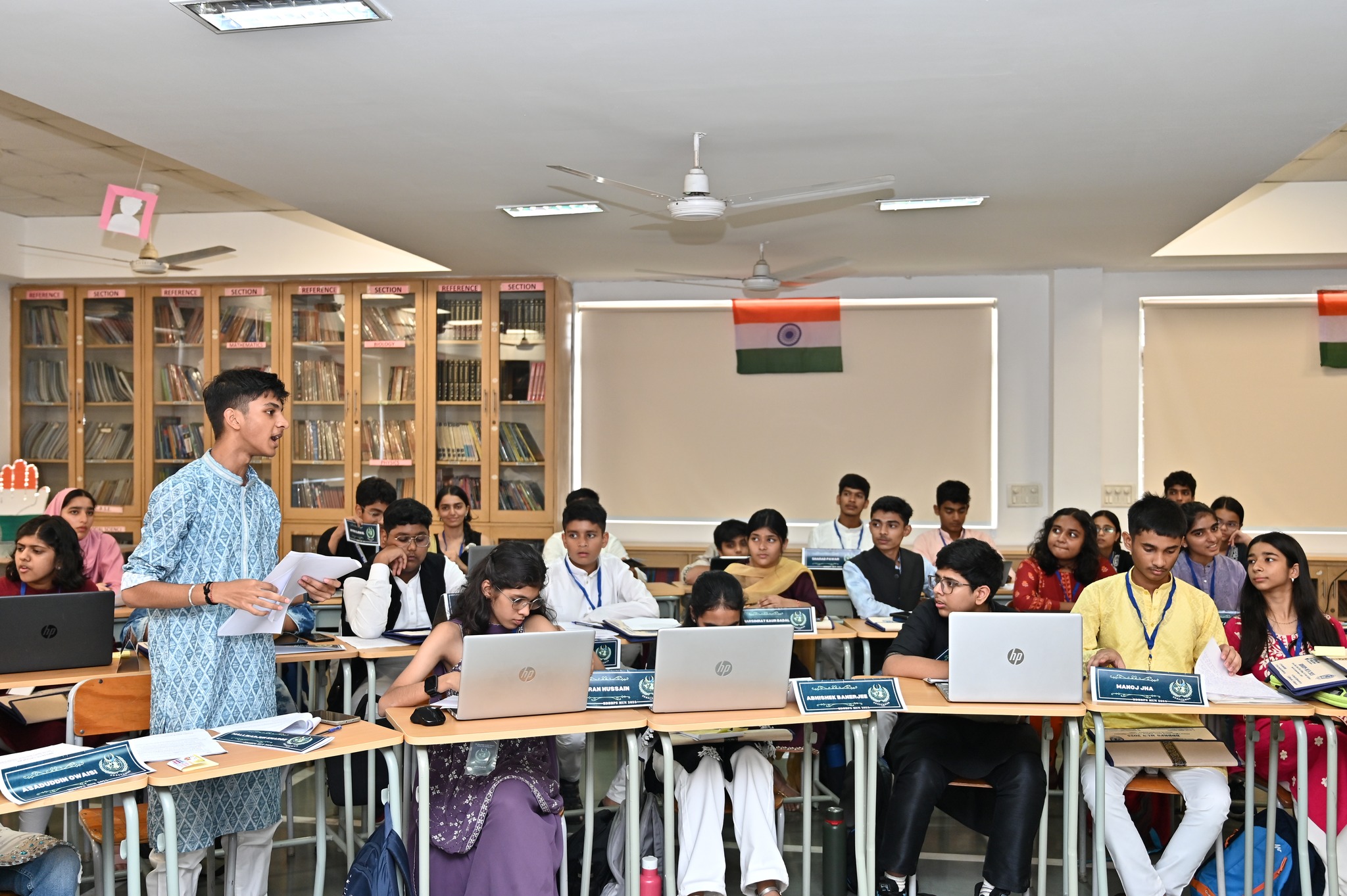Over two intellectually charged days, delegates immersed themselves in rigorous deliberations across diverse committees, including UNHRC, AIPPM, UNW, UNGA, UNEP, UNSC, IPC, ECOSOC, MOM, G20, and IC. The agendas tackled some of the most urgent issues of our times: bridging the gender pay gap, dismantling the pink tax, addressing the global digital divide, ensuring equitable access to technology, and harnessing climate innovation for a Net Zero future. Creativity and inclusion were further celebrated through the Ministry of Magic Committee, which examined themes of justice, equity, and reconciliation in a post-war world, while the International Press Corps captured the spirit of the conference through thoughtful reportage, interviews, and newsletters. Guided by an experienced and dynamic Executive Board, delegates collaborated, negotiated, and drafted resolutions embodying the essence of diplomacy and the power of collective action.