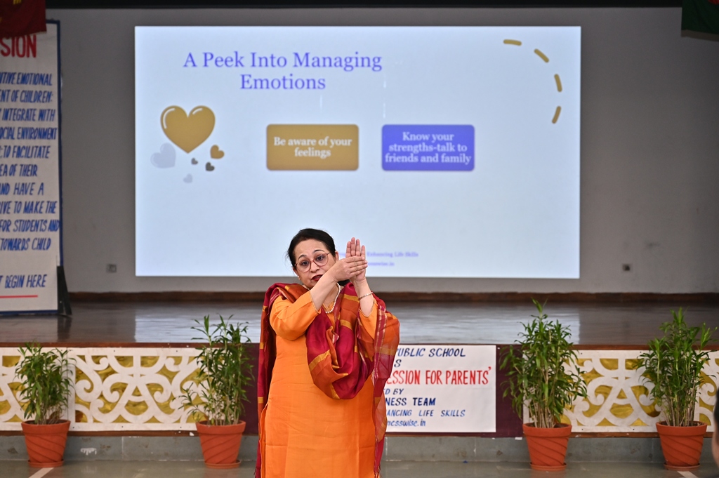 This Parent session was organized on April 23, 2025. The session was led by Dr. Alka Saxena, Deputy Director (Health & Wellness), BBGS, along with the Health & Wellness Resource Centre Team, offering valuable insights and practical strategies to support children's emotional well-being both at school and at home.