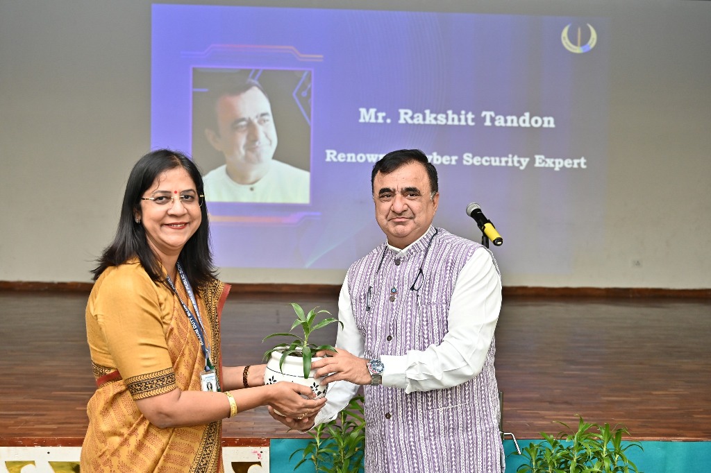 The session opened with a street play by the Cyber Council Team, led by Ms. Aneja. Their performance struck a chord with the audience, highlighting how everyday online habits can unknowingly put people at risk and why awareness is the best defence. The session was then taken forward by Dr. Rakshit Tandon, Cyber Security Evangelist, Consultant – IAMAI, and Advisor – Cyber Cell. Through real-life examples and practical insights, he shared how small, everyday choices like using strong passwords, avoiding public Wi-Fi, and securing personal data can make a big difference. His easy, relatable style turned what often feels like a technical subject into something everyone could connect with.