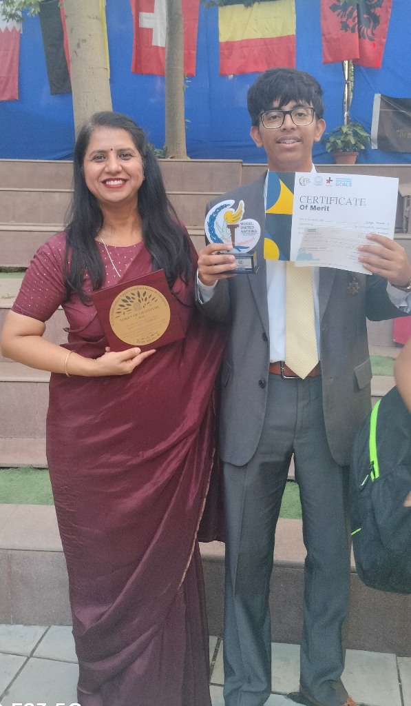 Meanwhile, Elsa and Kashvi, representing Palestine in the United Nations Security Council (UNSC), were lauded with a Verbal Mention for their persuasive diplomacy, in-depth research, and exemplary teamwork in navigating complex geopolitical discussions.