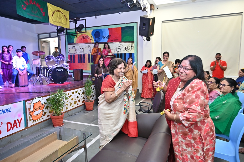 The day was brought alive with joyful intergenerational games that bridged generations with laughter and camaraderie. Grandmothers expertly tying neckties, grandfathers gamely folding sarees, the challenge of balancing balls on cones, and a spirited round of Antakshari turned the school grounds into a hub of joy, music, and animated cheer. It was a celebration not just of grandparents, but with them in every laugh, every dance, and every shared moment of light-hearted fun.