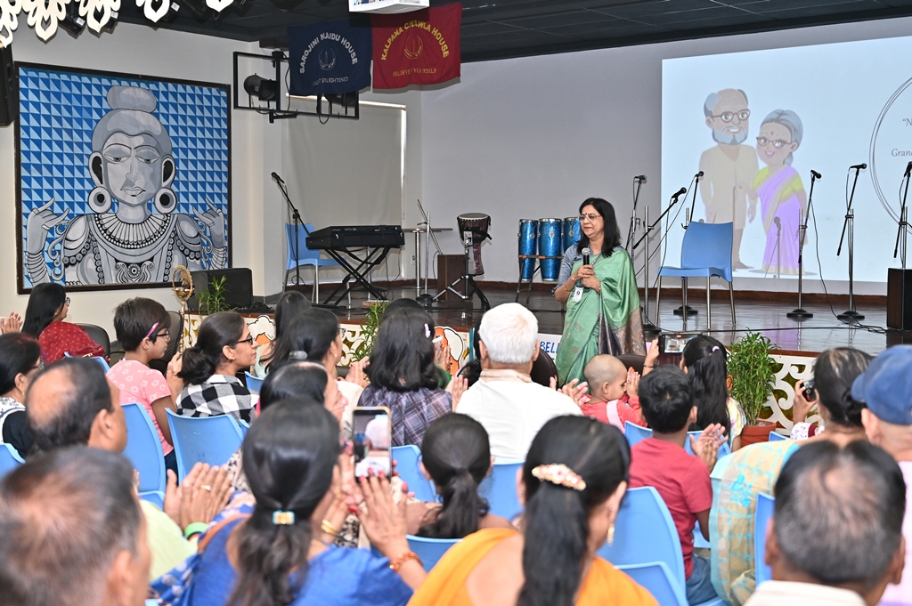 The morning unfolded with a soulful invocation, a melodious bhajan dedicated to Lord Rama setting a reverent and serene tone. In her warm and evocative address, Ms. Roopali Kudesia, Officiating Principal paid glowing tribute to the pivotal role of grandparents, recognizing them as the silent architects of moral strength, affection, and lifelong guidance in a child's world.