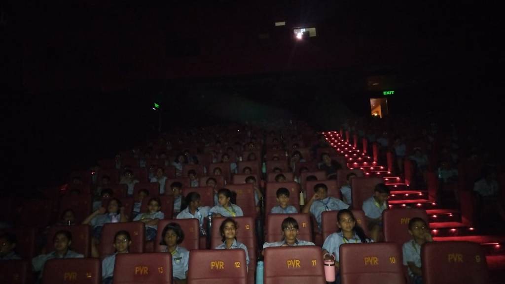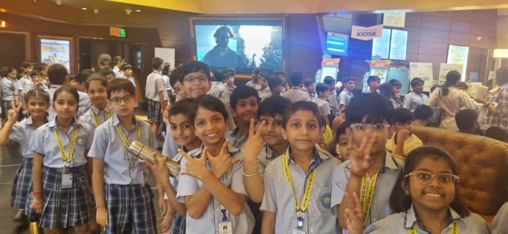 A special screening of the animated film Lilo & Stitch was organized for the students of Classes III to V on July 14, 2025, at PVR INOX, MGF Metropolitan, Gurugram, as part of the school’s experiential learning initiative. The objective was to nurture empathy, emotional intelligence, and appreciation for diversity through visual storytelling.