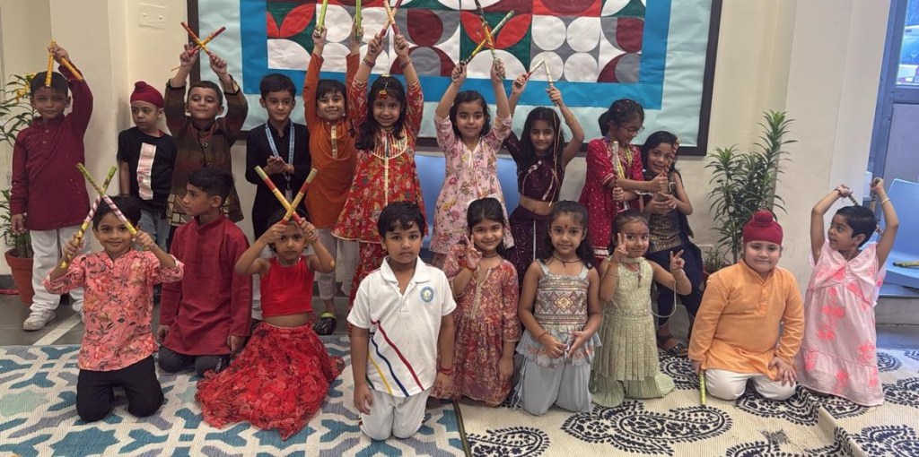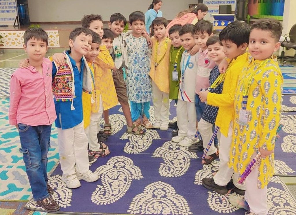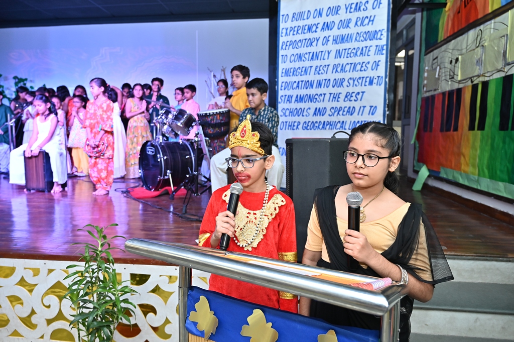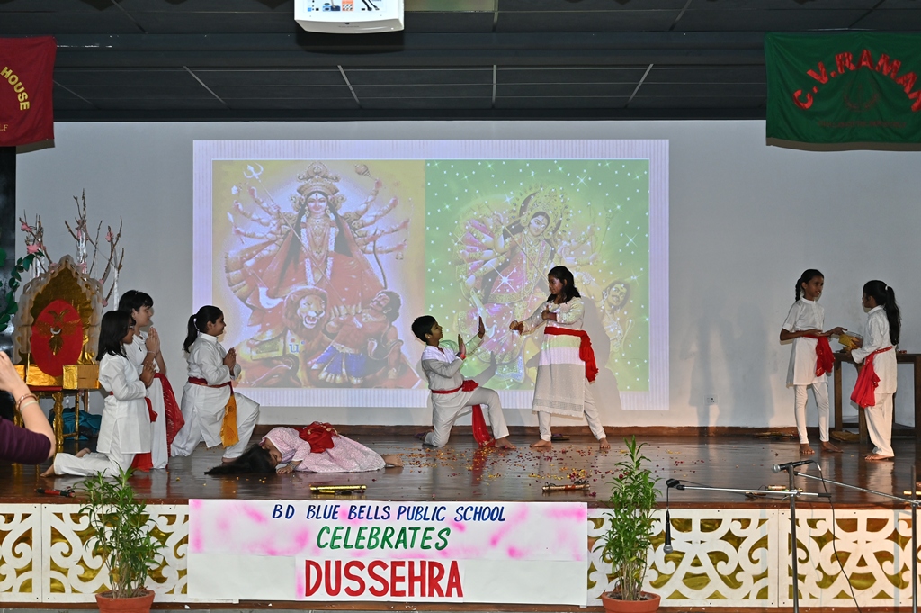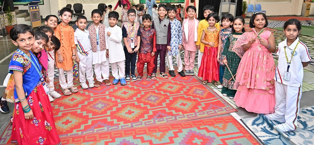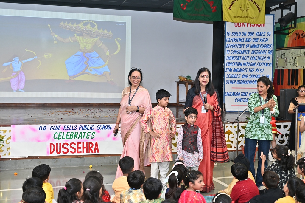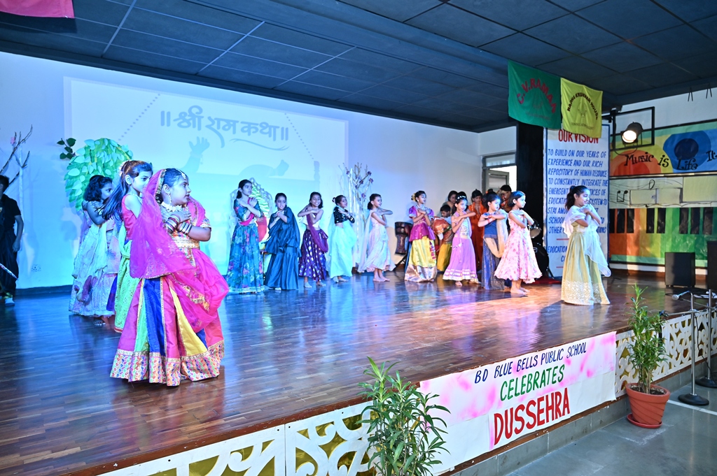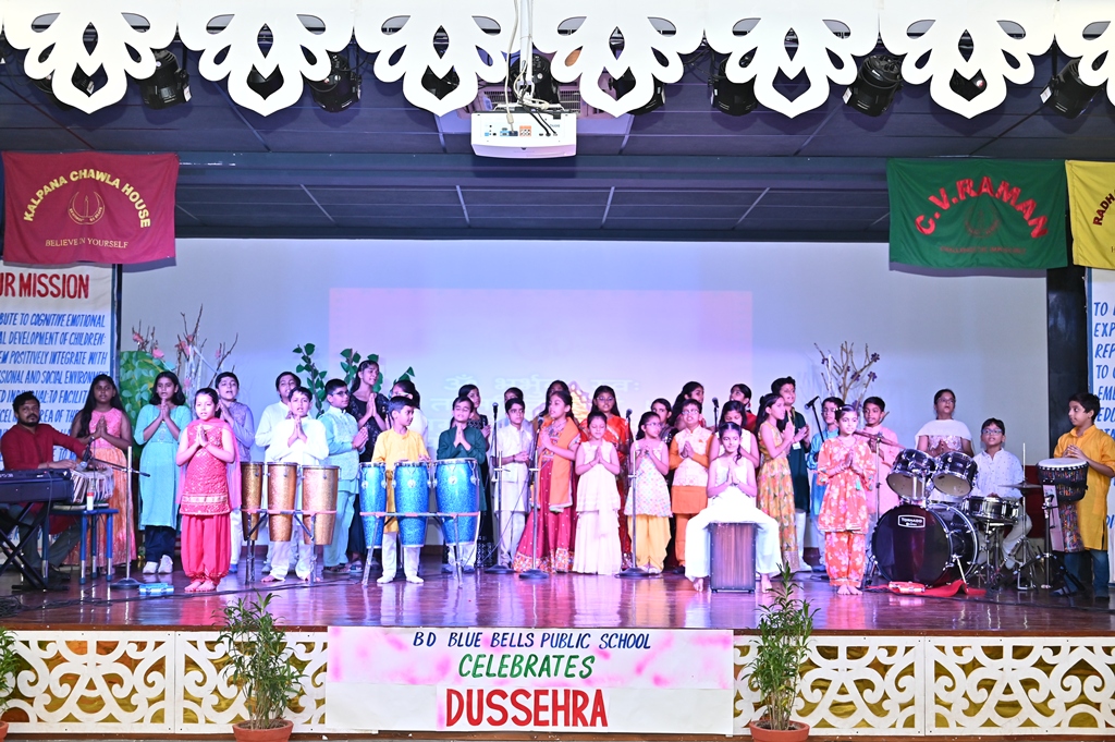 In honour of Navratri and Dussehra, the students of Kalpana Chawla House (Primary Wing) staged a special assembly that beautifully captured the festive spirit. Dressed in colourful traditional attire, the young participants filled the atmosphere with devotional songs and lively folk dances, radiating enthusiasm, faith, and joy.