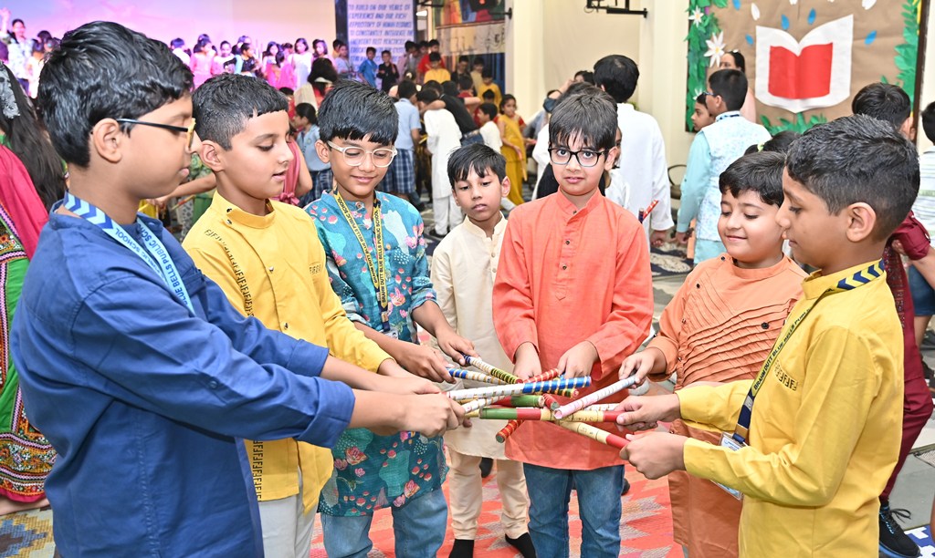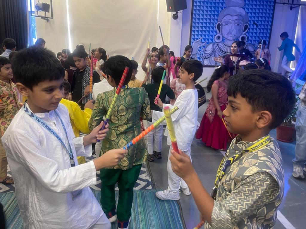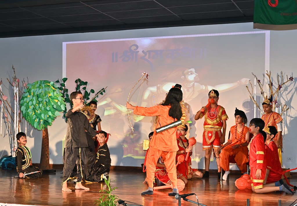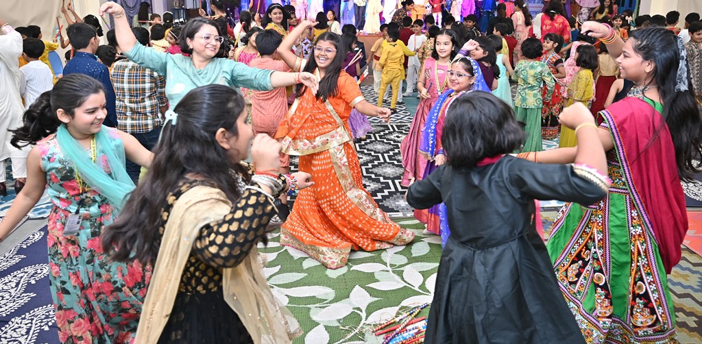 A highlight of the programme was a captivating musical presentation of the Ramayana, which conveyed the eternal lesson of good triumphing over evil. The celebration reached its peak with a spirited dandiya performance by students from Playgroup to Class V, leaving the audience thoroughly delighted.