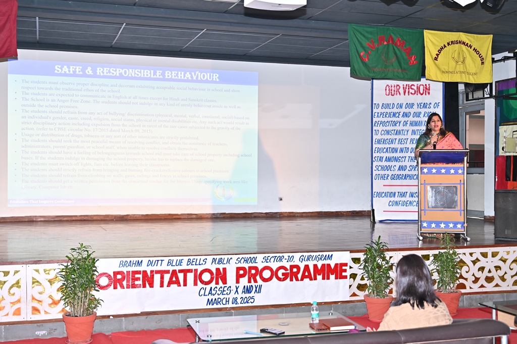 Brahm Dutt Blue Bells Public School organized an engaging and insightful Orientation Day for parents of students transitioning to Grades X and XII on March 08, 2025. The session aimed to equip parents with a clear understanding of the academic framework, including the core and skill-based subjects available at these levels. The school also elaborated on the evaluation process, highlighting its role in shaping students’ academic progress and future pathways. Furthermore, the importance of adhering to the school's code of conduct was emphasized, reinforcing values of discipline and accountability.