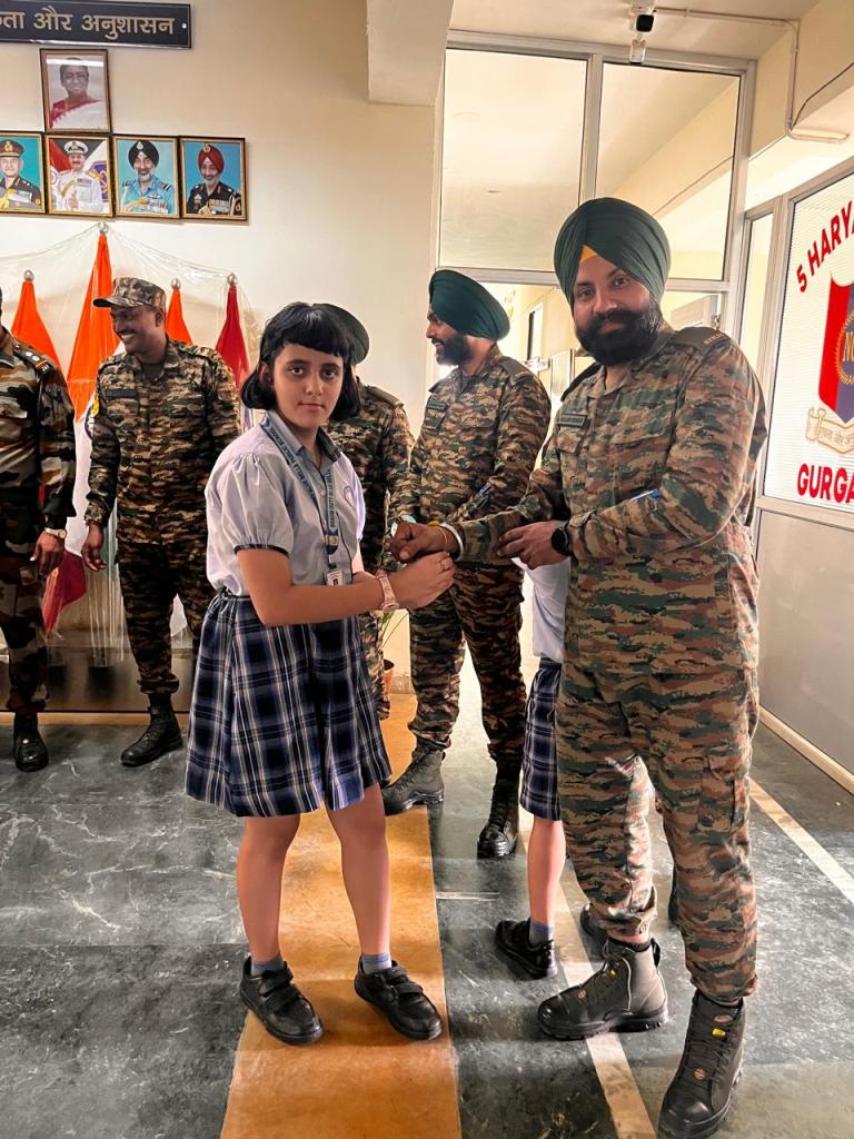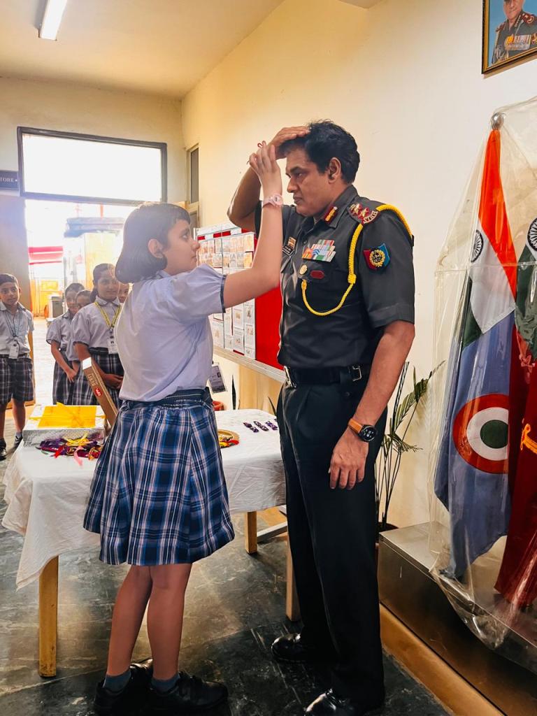 The soldiers, touched by the innocence and sincerity of the students’ gesture, responded with warmth and encouragement, creating an unforgettable atmosphere of unity and mutual admiration. This poignant interaction not only honoured the spirit of Raksha Bandhan but also ignited in the young minds a profound sense of national pride, empathy, and gratitude. The experience etched lasting impressions, reinforcing the students’ understanding of true heroism and leaving them inspired by the courage and commitment of our nation’s real guardians.
