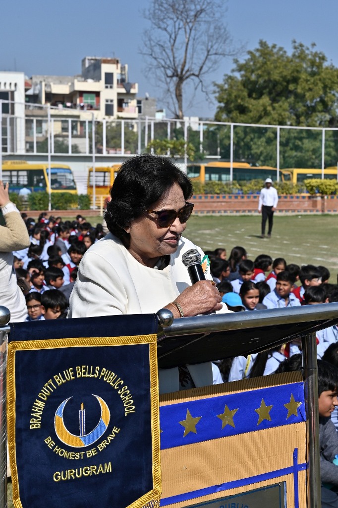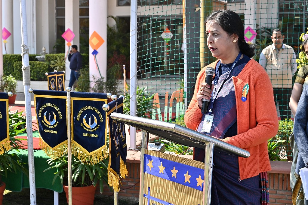 The event commenced with the arrival of the distinguished Chief Guest, Dr. Saroj Suman Gulati, Director of Blue Bells Group of Schools, whose presence greatly elevated the significance of the celebration. The day began with the Director's ceremonial hoisting of the Tricolour, accompanied by the resonant voices of the entire school singing the National Anthem, igniting a collective feeling of pride and solidarity.