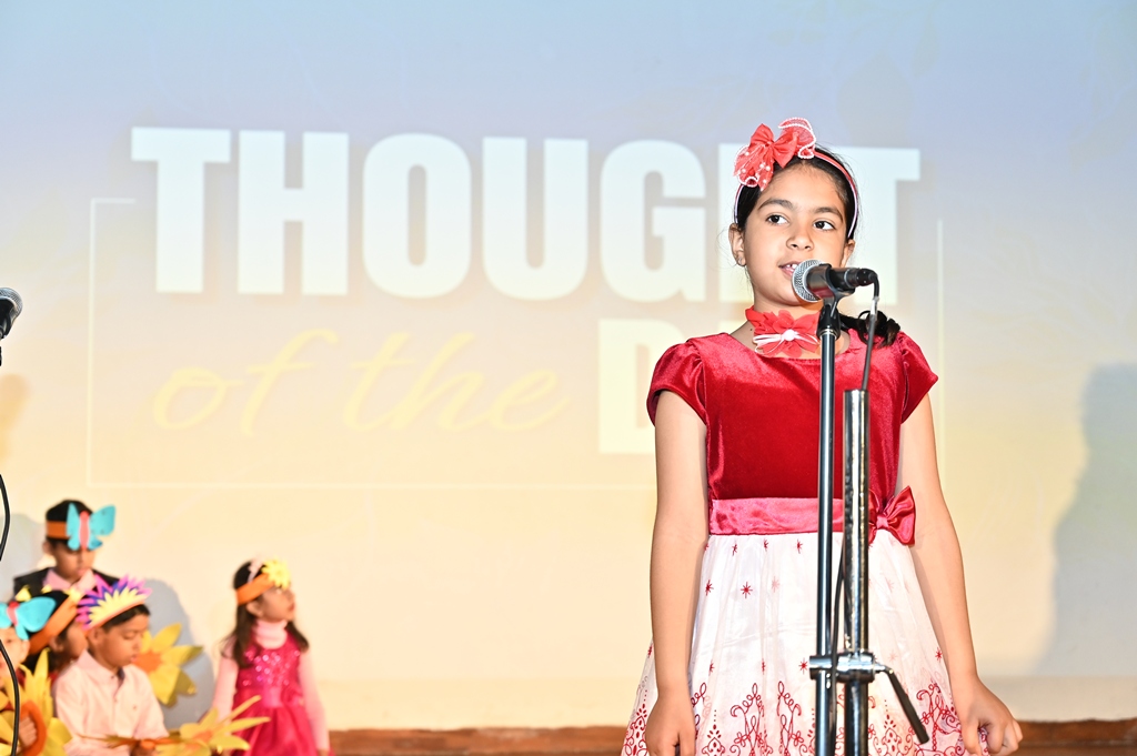 The assembly began with students sharing an inspiring thought for the day and introducing new vocabulary aligned with the theme. Their enthusiasm shone through a captivating ramp walk featuring all seasons, a melodious song, and an energetic dance performance, bringing the spirit of spring to life.