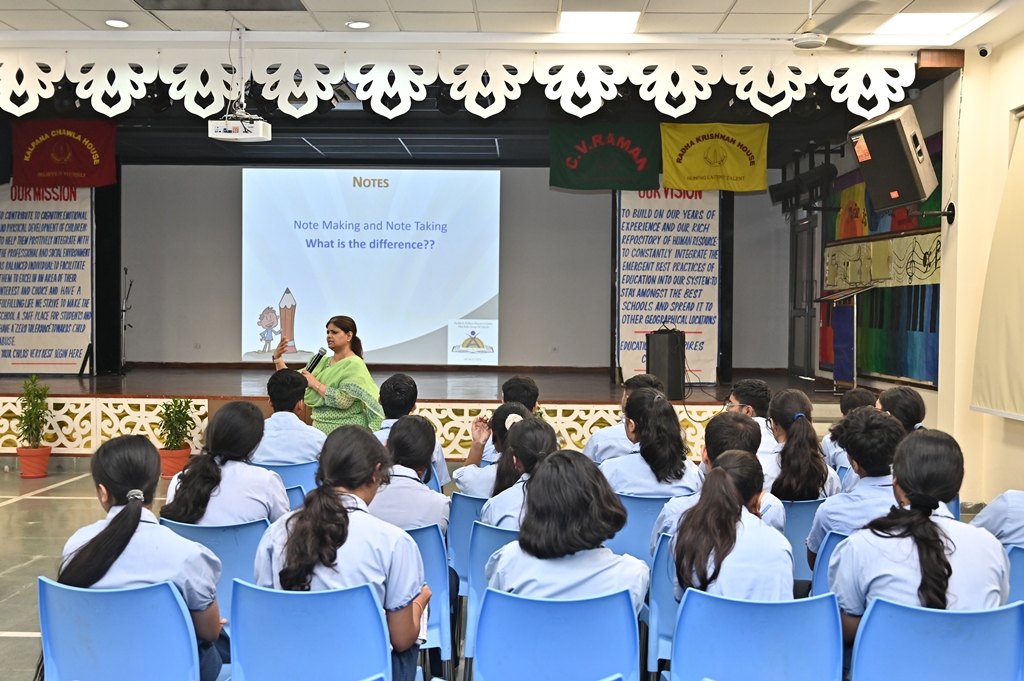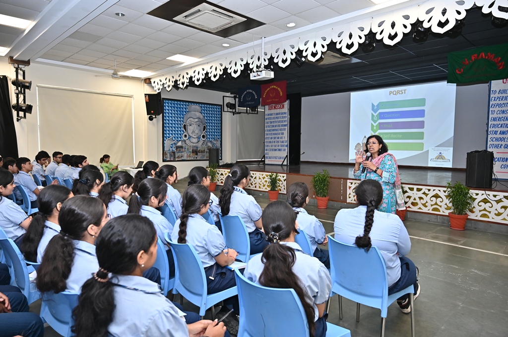 The students were introduced to the PQRST method (Preview, Question, Read, Self-study, and Test)—a structured technique that emphasizes the importance of systematic study for better retention of information. The session also covered essential skills such as organizing online study material, effective note-taking techniques, and the various methods of creating detailed, meaningful notes. In addition, students learned about Reading Skills and Writing Skills, which included guidance on mark distribution and time management during examinations.