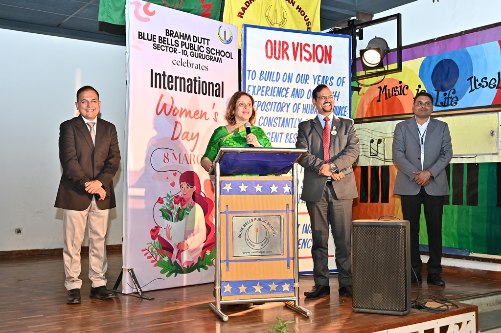The Women's Day celebration at Brahm Dutt Blue Bells Public School on March 8, 2025, was a vibrant and inspiring event dedicated to recognizing the remarkable contributions of women in all walks of life. The occasion served as a platform to honour their achievements, resilience, and relentless spirit while reinforcing the importance of gender equality and empowerment.