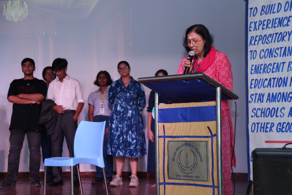 Adding a poignant dimension to the assembly was a heartfelt, self-composed poem by the Class Teacher, Ms. Lakshmi Hariharan, which beautifully captured the splendour of nature and the pressing urgency of its preservation. The poetic expression not only moved the audience but also served as a reminder that nature speaks through every rustling leaf, flowing stream, and chirping bird, if only we choose to listen.