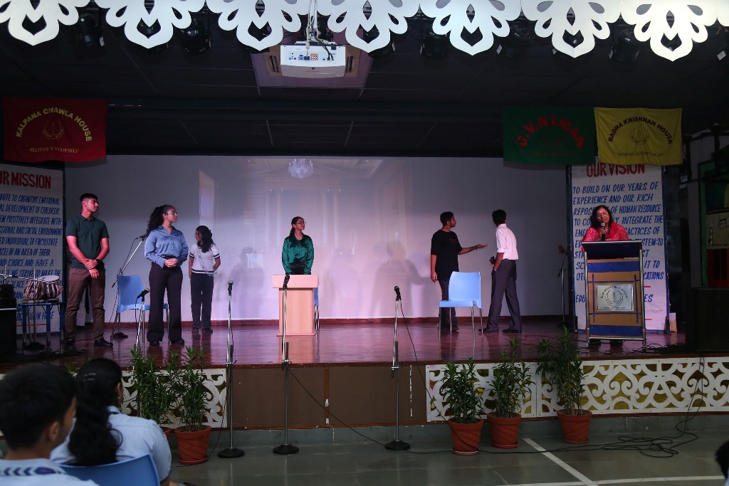 The Thought for the Day spotlighted the critical need for sustainable practices and mindful resource consumption, encouraging everyone to become stewards of the Earth. What followed was a compelling and conscience-stirring skit, where students creatively illustrated how small, conscious changes in daily habits like reducing plastic use, saving water, and embracing green alternatives can create a ripple effect for global impact.