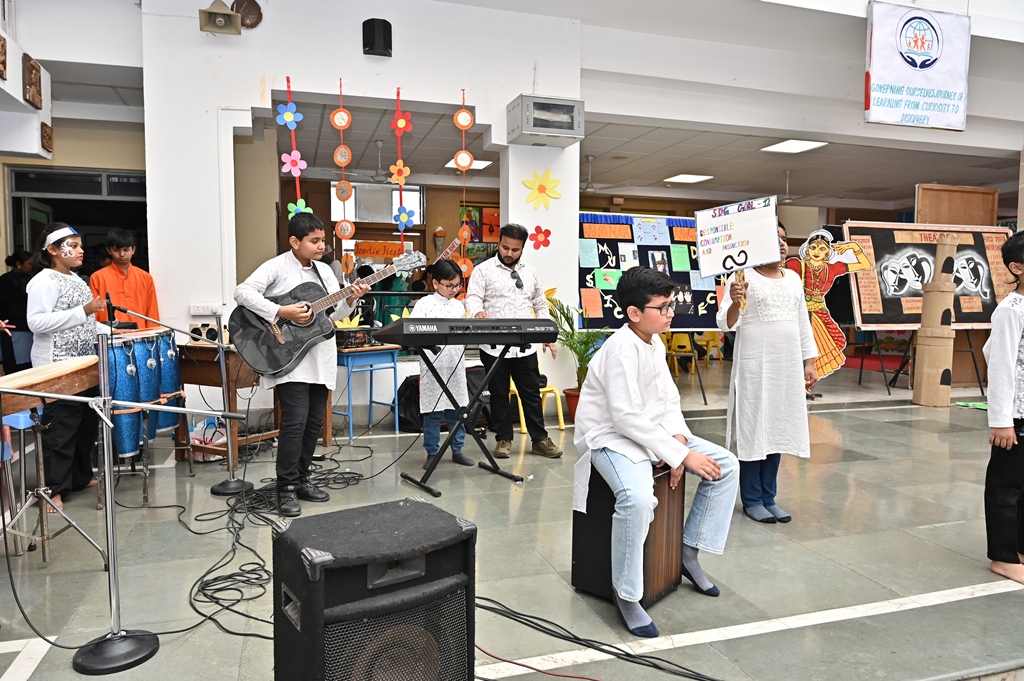 This year’s theme, ‘Governing Ourselves: Journey of Learning from Curiosity to Discovery’ was thoughtfully integrated into different subjects like languages, Math and EVS, encouraging students to engage with the concepts of self-governance, responsibility, and leadership. The theme extended to IT, Visual Arts, Performing Arts, and Physical Education, making learning more meaningful. From interactive exhibits to hands-on experiences, every aspect of the event was designed to spark curiosity and inspire discovery.