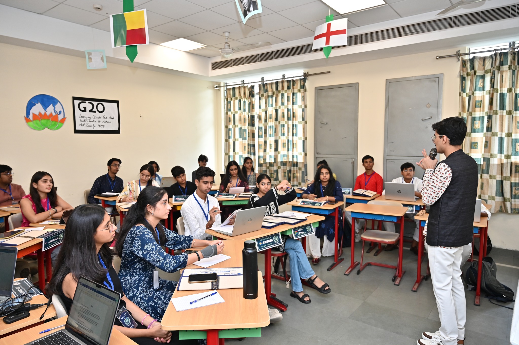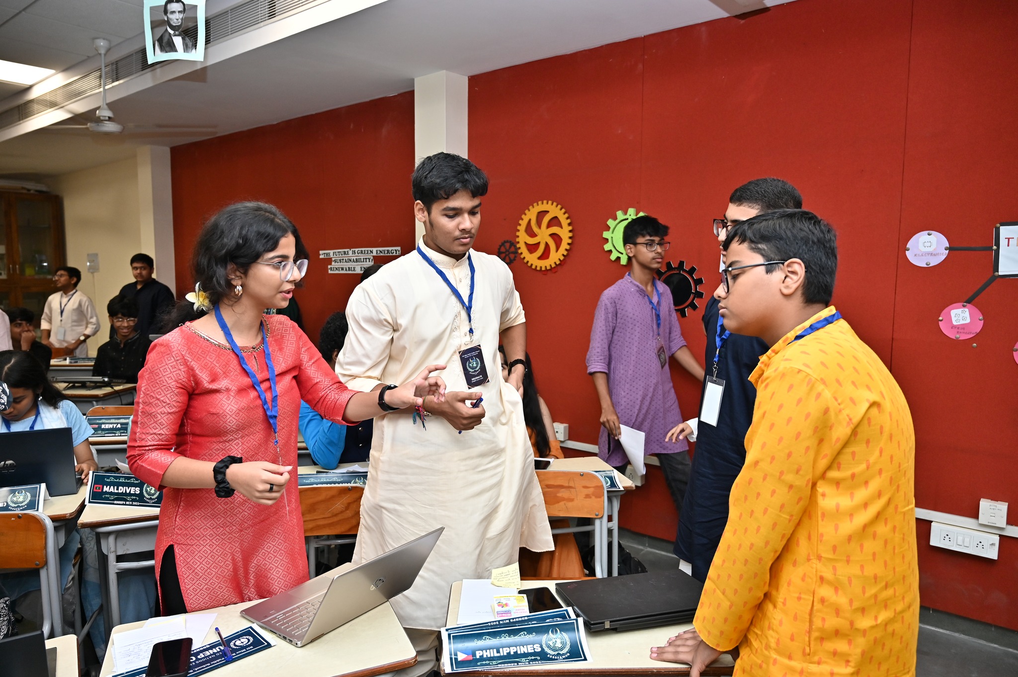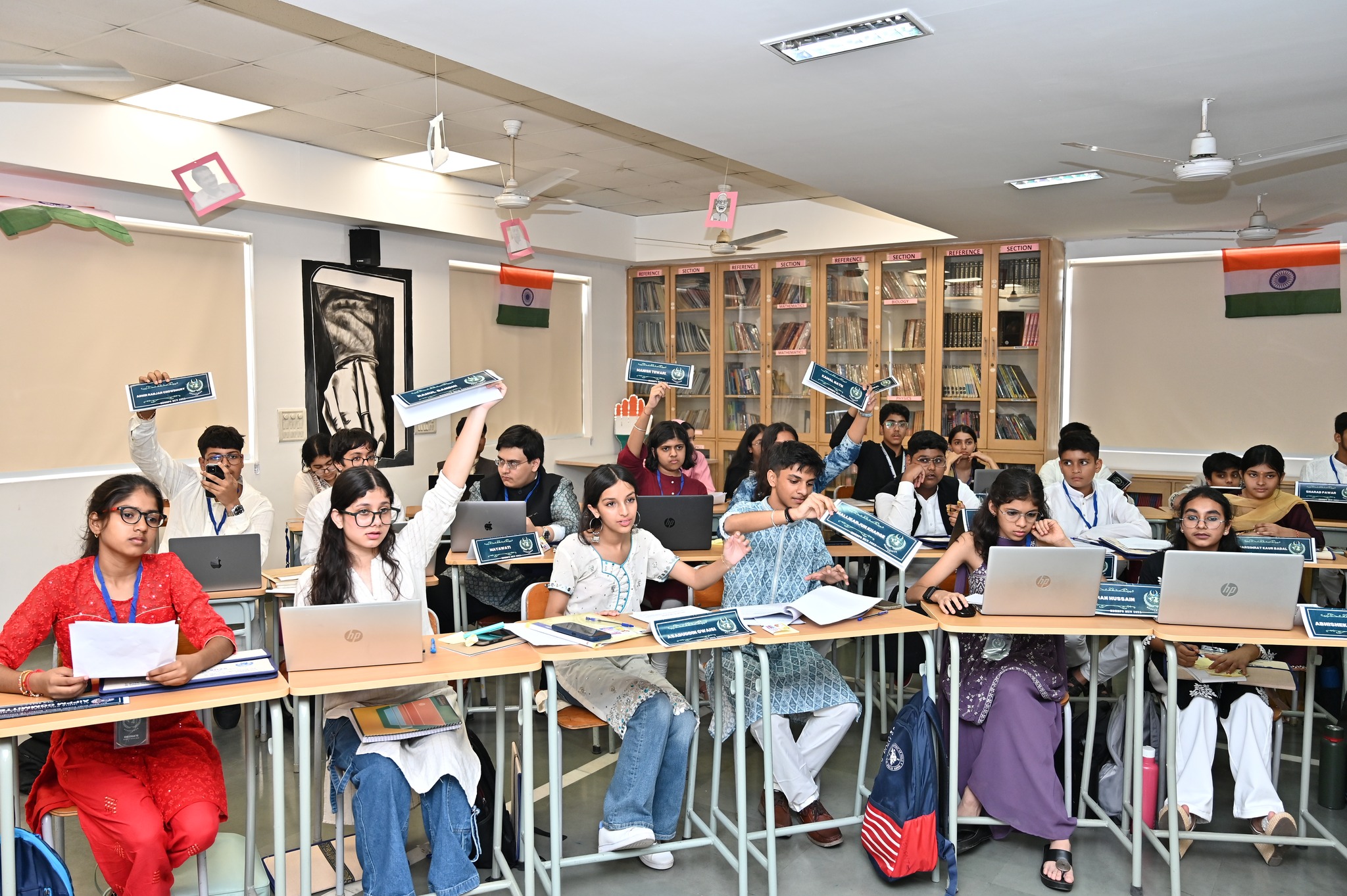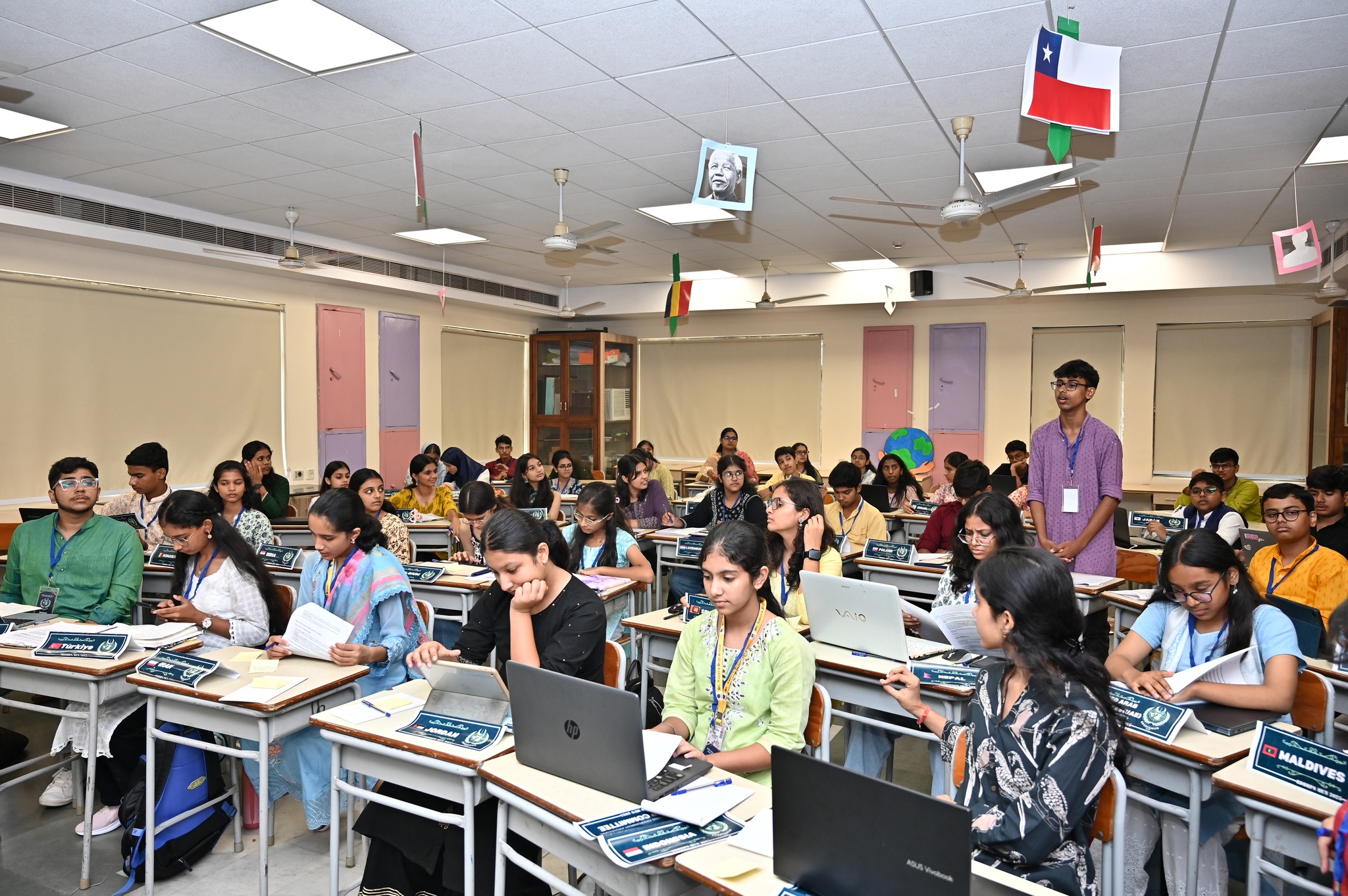 Over two intellectually charged days, delegates immersed themselves in rigorous deliberations across diverse committees, including UNHRC, AIPPM, UNW, UNGA, UNEP, UNSC, IPC, ECOSOC, MOM, G20, and IC. The agendas tackled some of the most urgent issues of our times: bridging the gender pay gap, dismantling the pink tax, addressing the global digital divide, ensuring equitable access to technology, and harnessing climate innovation for a Net Zero future. Creativity and inclusion were further celebrated through the Ministry of Magic Committee, which examined themes of justice, equity, and reconciliation in a post-war world, while the International Press Corps captured the spirit of the conference through thoughtful reportage, interviews, and newsletters. Guided by an experienced and dynamic Executive Board, delegates collaborated, negotiated, and drafted resolutions embodying the essence of diplomacy and the power of collective action.