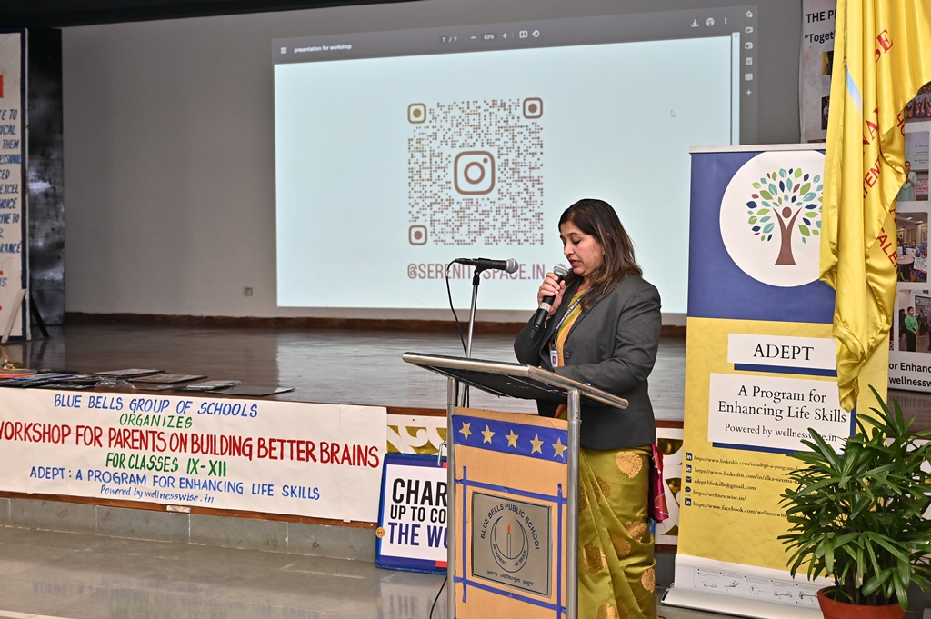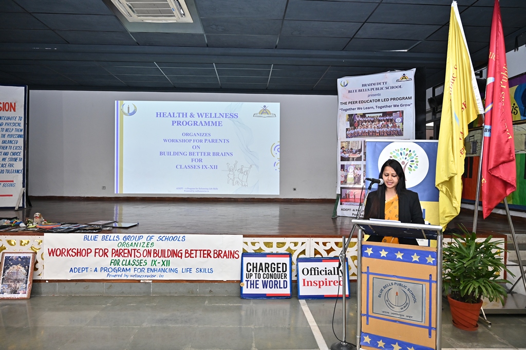 At Blue Bells Group of Schools, we firmly believe that a strong parent-school partnership lays the foundation for meaningful learning experiences. In line with this vision, under the aegis of Adept – A Program for Enhancing Life Skills, powered by wellnesswise.in, an insightful and transformative session, “Building Better Brains: Neuroscience Insights & Strategies for Cognitive Success,” was organized on February 8, 2025. The session was thoughtfully curated for the parents of senior students. Dr. Saroj Suman Gulati, esteemed Director, BBGS graced the workshop with her benign presence.