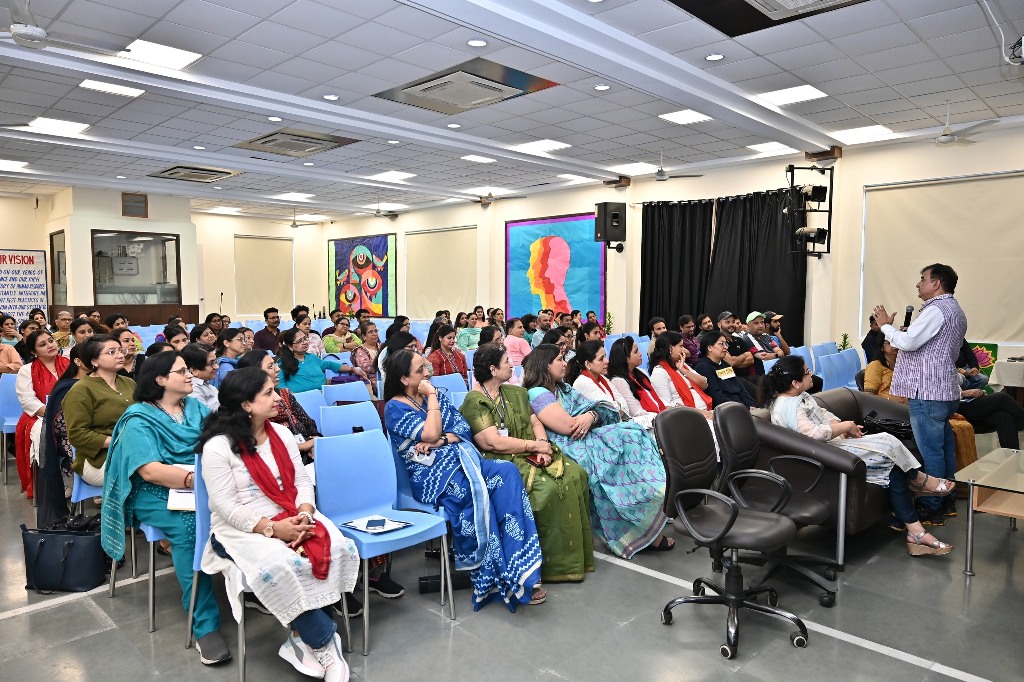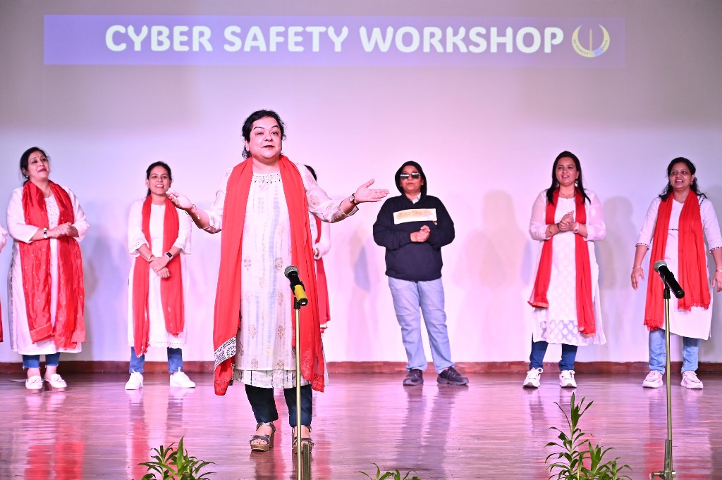The session opened with a street play by the Cyber Council Team, led by Ms. Aneja. Their performance struck a chord with the audience, highlighting how everyday online habits can unknowingly put people at risk and why awareness is the best defence. The session was then taken forward by Dr. Rakshit Tandon, Cyber Security Evangelist, Consultant – IAMAI, and Advisor – Cyber Cell. Through real-life examples and practical insights, he shared how small, everyday choices like using strong passwords, avoiding public Wi-Fi, and securing personal data can make a big difference. His easy, relatable style turned what often feels like a technical subject into something everyone could connect with.