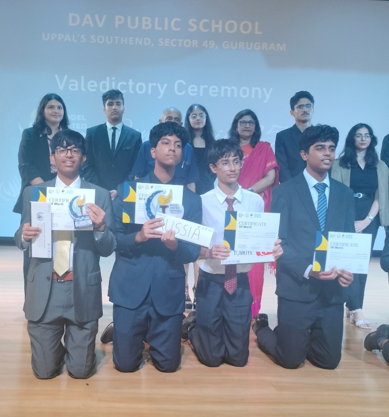 Meanwhile, Elsa and Kashvi, representing Palestine in the United Nations Security Council (UNSC), were lauded with a Verbal Mention for their persuasive diplomacy, in-depth research, and exemplary teamwork in navigating complex geopolitical discussions.