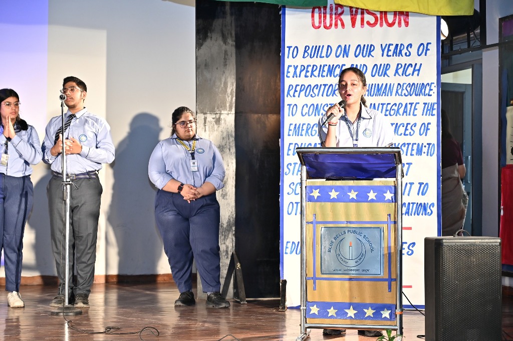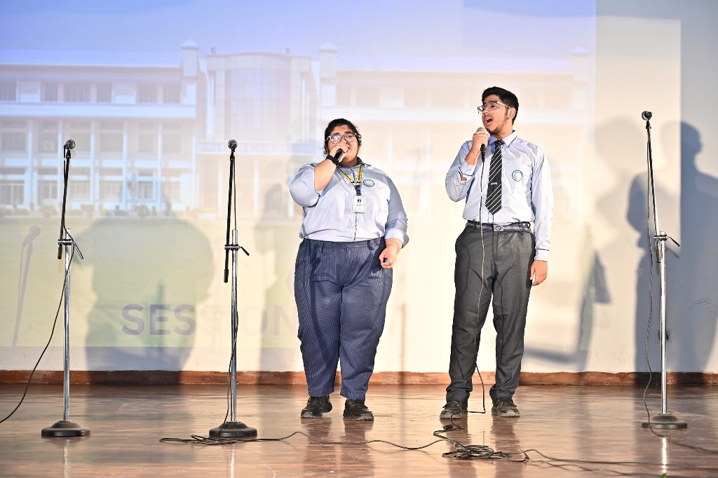 The first day of the new academic session unfolded with energy and enthusiasm as Class XII D led a dynamic morning assembly. The session commenced with the customary opening elements, followed by a heartfelt welcome address by the Vice Principal, Ms. Roopali Kudesia. A soulful devotional song by the students infused the gathering with inspiration and positivity.