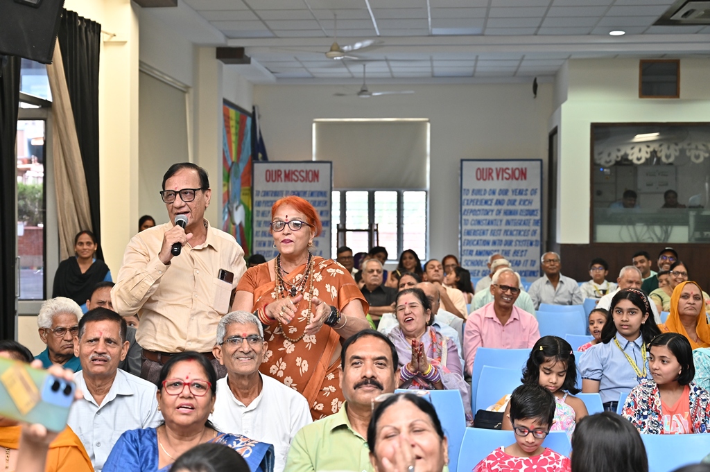 The morning unfolded with a soulful invocation, a melodious bhajan dedicated to Lord Rama setting a reverent and serene tone. In her warm and evocative address, Ms. Roopali Kudesia, Officiating Principal paid glowing tribute to the pivotal role of grandparents, recognizing them as the silent architects of moral strength, affection, and lifelong guidance in a child's world.