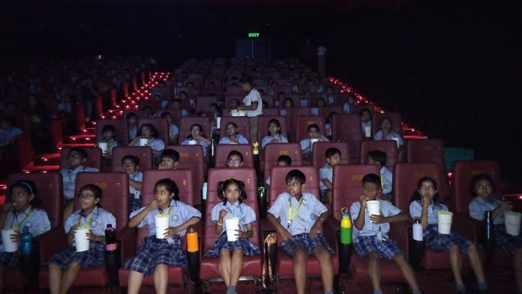 The big-screen ambience amplified their excitement, and the thoughtful treat of popcorn and juice made the experience even more memorable. Laughter echoed through the theatre, eyes widened with wonder, and thoughtful silence followed emotional moments—an indication of the