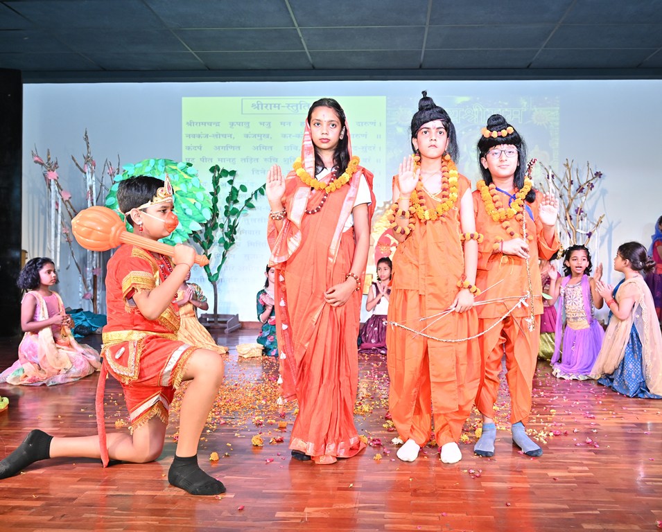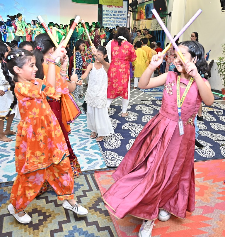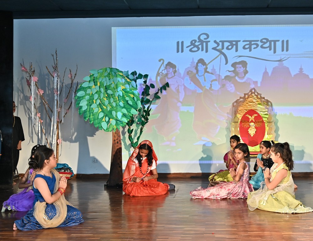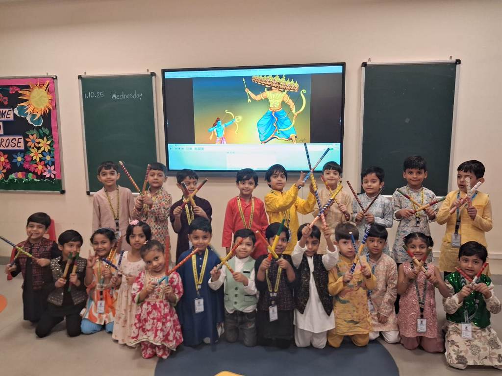 A highlight of the programme was a captivating musical presentation of the Ramayana, which conveyed the eternal lesson of good triumphing over evil. The celebration reached its peak with a spirited dandiya performance by students from Playgroup to Class V, leaving the audience thoroughly delighted.