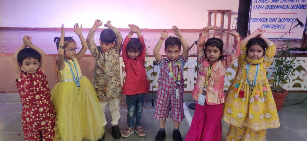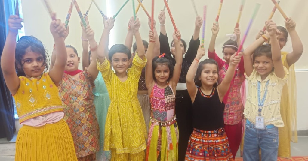 In honour of Navratri and Dussehra, the students of Kalpana Chawla House (Primary Wing) staged a special assembly that beautifully captured the festive spirit. Dressed in colourful traditional attire, the young participants filled the atmosphere with devotional songs and lively folk dances, radiating enthusiasm, faith, and joy.