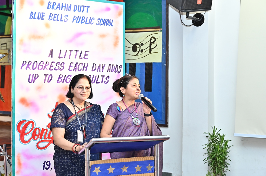 Brahm Dutt Blue Bells Public School hosted a heartwarming Felicitation Ceremony to honour the academic brilliance and unwavering commitment of students from Classes VI to IX and XI for the session 2024–25. This celebration recognized not only those who excelled academically but also those who demonstrated exceptional dedication through 100% attendance—truly embodying the spirit of perseverance and consistency.