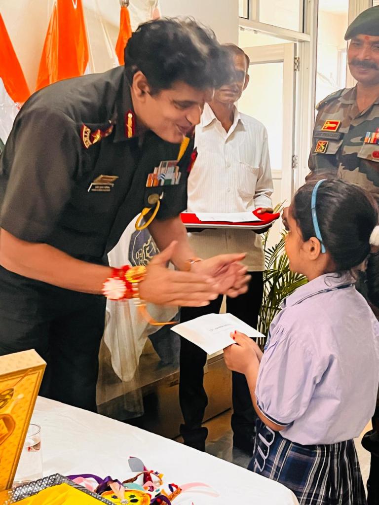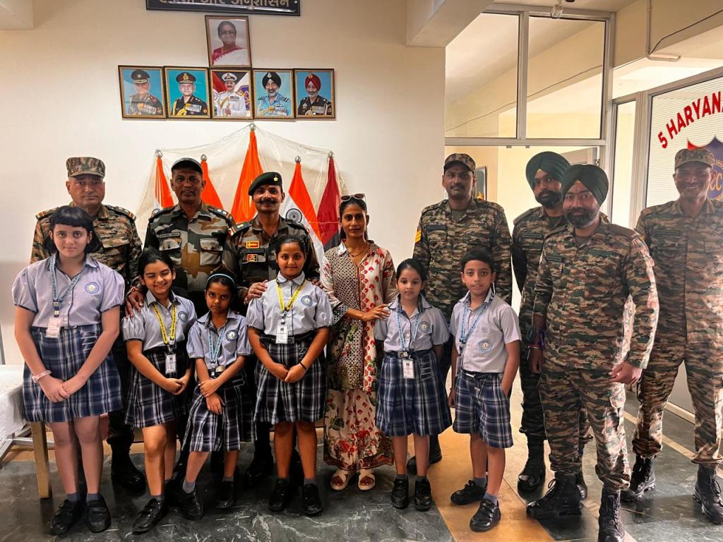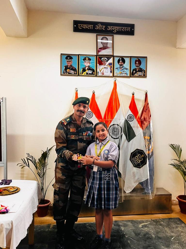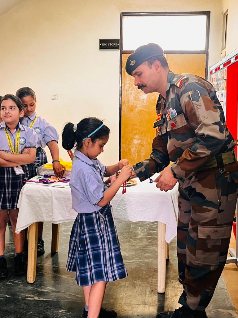 The soldiers, touched by the innocence and sincerity of the students’ gesture, responded with warmth and encouragement, creating an unforgettable atmosphere of unity and mutual admiration. This poignant interaction not only honoured the spirit of Raksha Bandhan but also ignited in the young minds a profound sense of national pride, empathy, and gratitude. The experience etched lasting impressions, reinforcing the students’ understanding of true heroism and leaving them inspired by the courage and commitment of our nation’s real guardians.