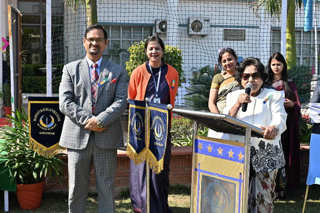 The event commenced with the arrival of the distinguished Chief Guest, Dr. Saroj Suman Gulati, Director of Blue Bells Group of Schools, whose presence greatly elevated the significance of the celebration. The day began with the Director's ceremonial hoisting of the Tricolour, accompanied by the resonant voices of the entire school singing the National Anthem, igniting a collective feeling of pride and solidarity.