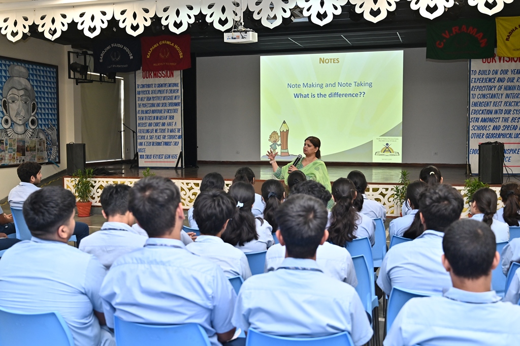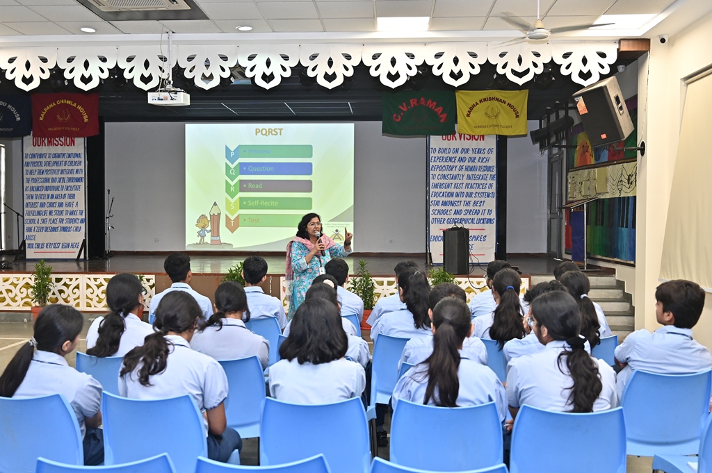 The students were introduced to the PQRST method (Preview, Question, Read, Self-study, and Test)—a structured technique that emphasizes the importance of systematic study for better retention of information. The session also covered essential skills such as organizing online study material, effective note-taking techniques, and the various methods of creating detailed, meaningful notes. In addition, students learned about Reading Skills and Writing Skills, which included guidance on mark distribution and time management during examinations.