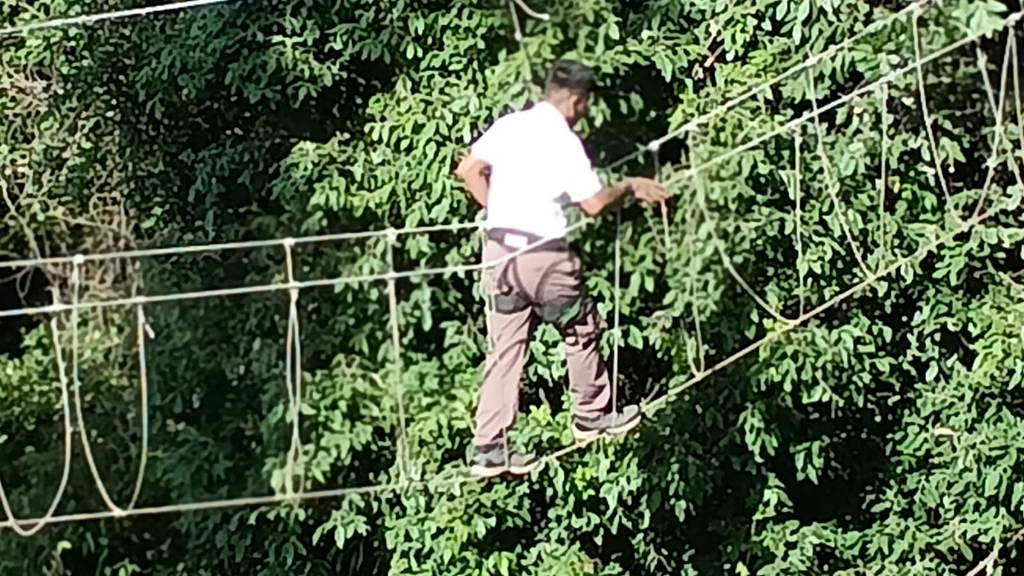 thrilling challenges — Burma Bridge crossings, Commando Net crawls, wall